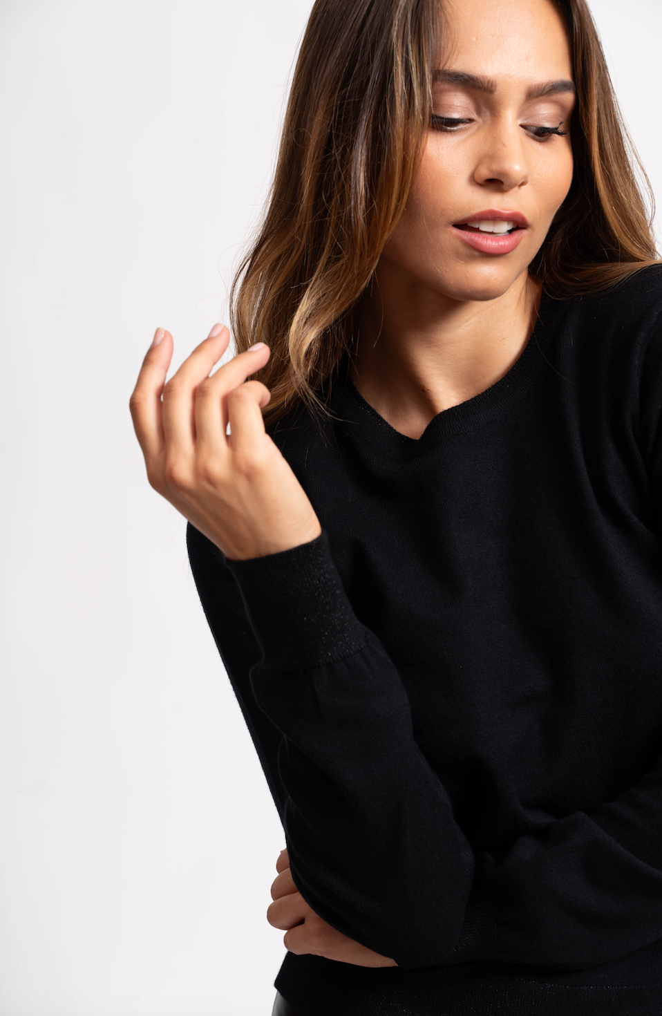 Pull col rond avec fils de Lurex®